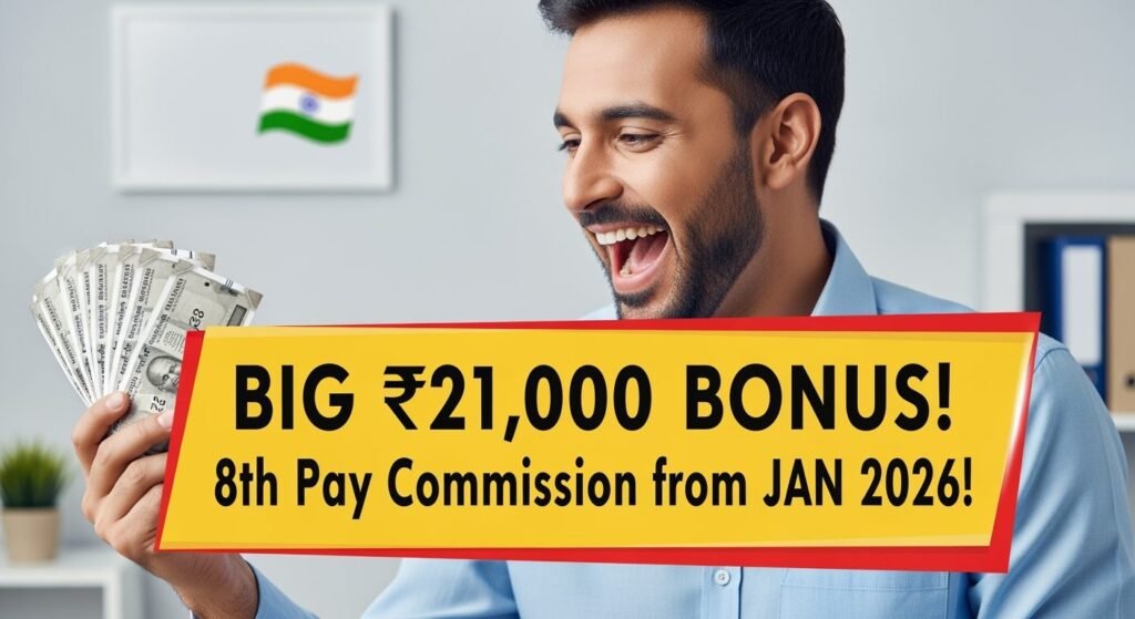 8th Pay Commission: मैं आज आपको एक बड़ी खुशखबरी देने जा रहा हूँ! जनवरी 2026 से 8th Pay Commission लागू होने वाला है, जिससे सरकारी कर्मचारियों को ₹21,000 तक का बड़ा वेतन बोनस मिलने की संभावना है। यह खबर लाखों सरकारी कर्मचारियों के लिए राहत भरी है, जो लंबे समय से वेतन वृद्धि का इंतज़ार कर रहे थे। क्या आप भी इस नई घोषणा से उत्साहित हैं?