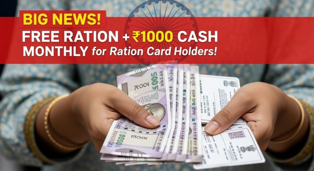 राशन कार्ड वालों के लिए तोहफ़ा, अब हर महीने फ्री राशन के साथ ₹1000 कैश भी मिलेगा